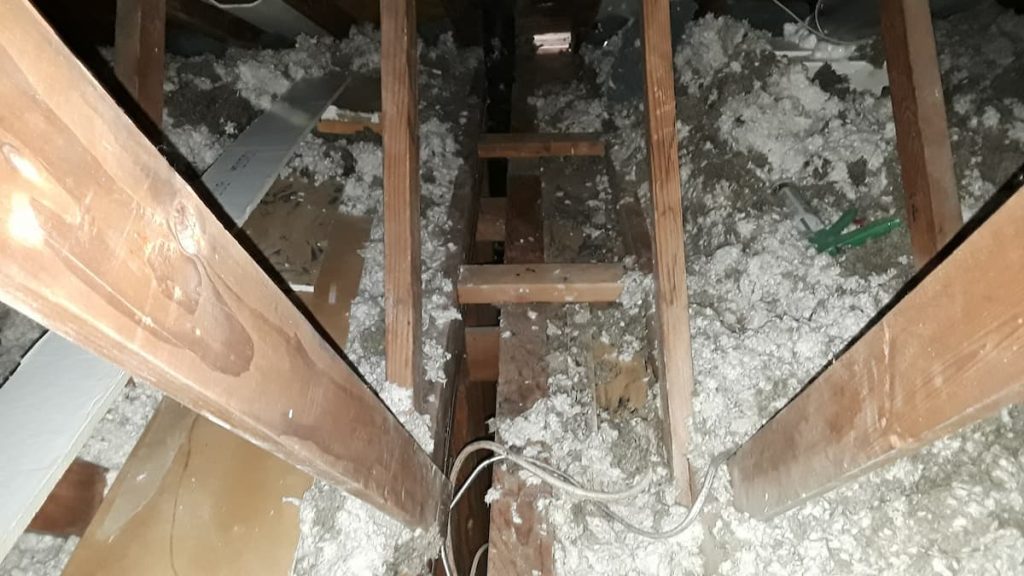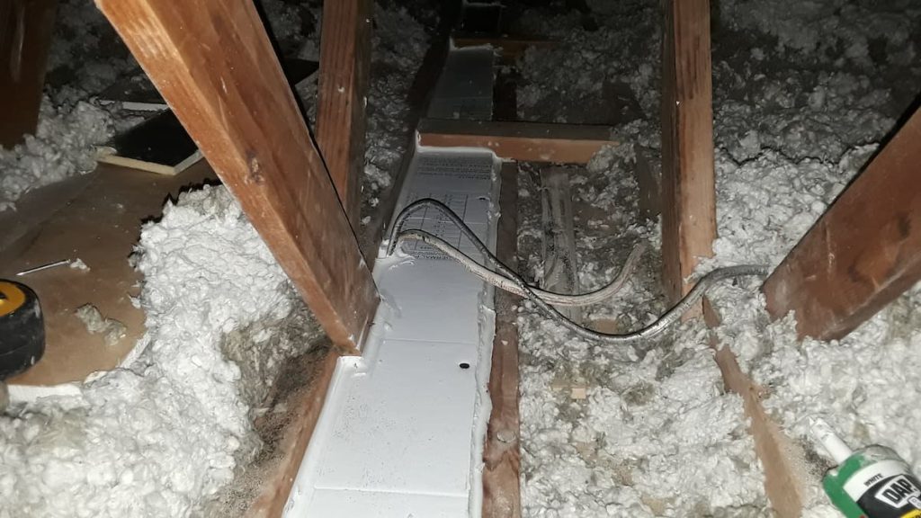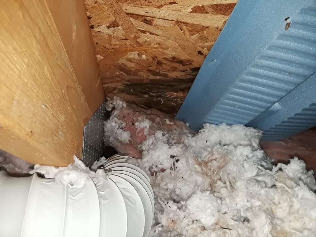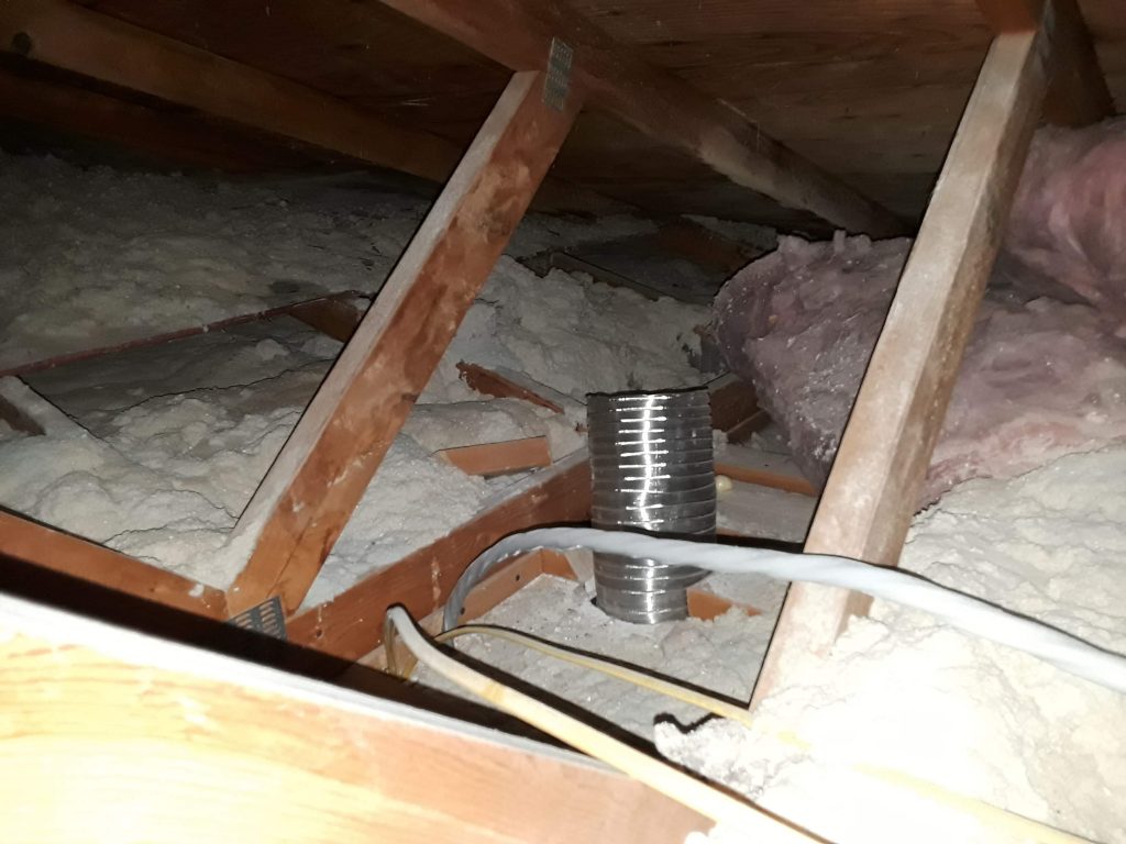 Furnaces, water heaters, bathroom exhaust fans, kitchen exhaust fans — we make sure they’re all exhausting properly before we add insulation. This matters because we regularly find bathroom and kitchen fans venting directly into the attic rather than outside the home. Once insulation is added, that becomes a significant moisture problem. We also find situations where a brick chimney has been dismantled to just below the roofline — which sounds fine until you realize it leaves a direct air pathway from the basement all the way to the attic. Some of the moisture damage photos in our earlier post came from exactly that situation.