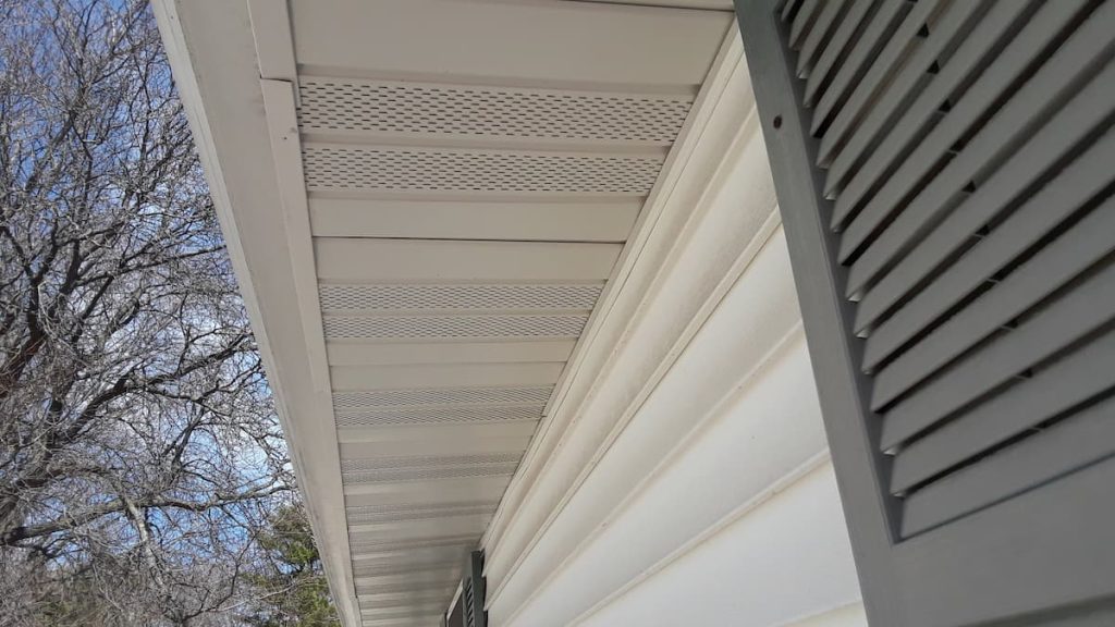 Proper attic ventilation requires intake air at the soffits and exhaust at the ridge. We regularly find homes where vented soffit panels were installed directly over the original solid panels — which means no air is actually getting in, regardless of what it looks like from the ground. That leads to moisture buildup in the attic over time.